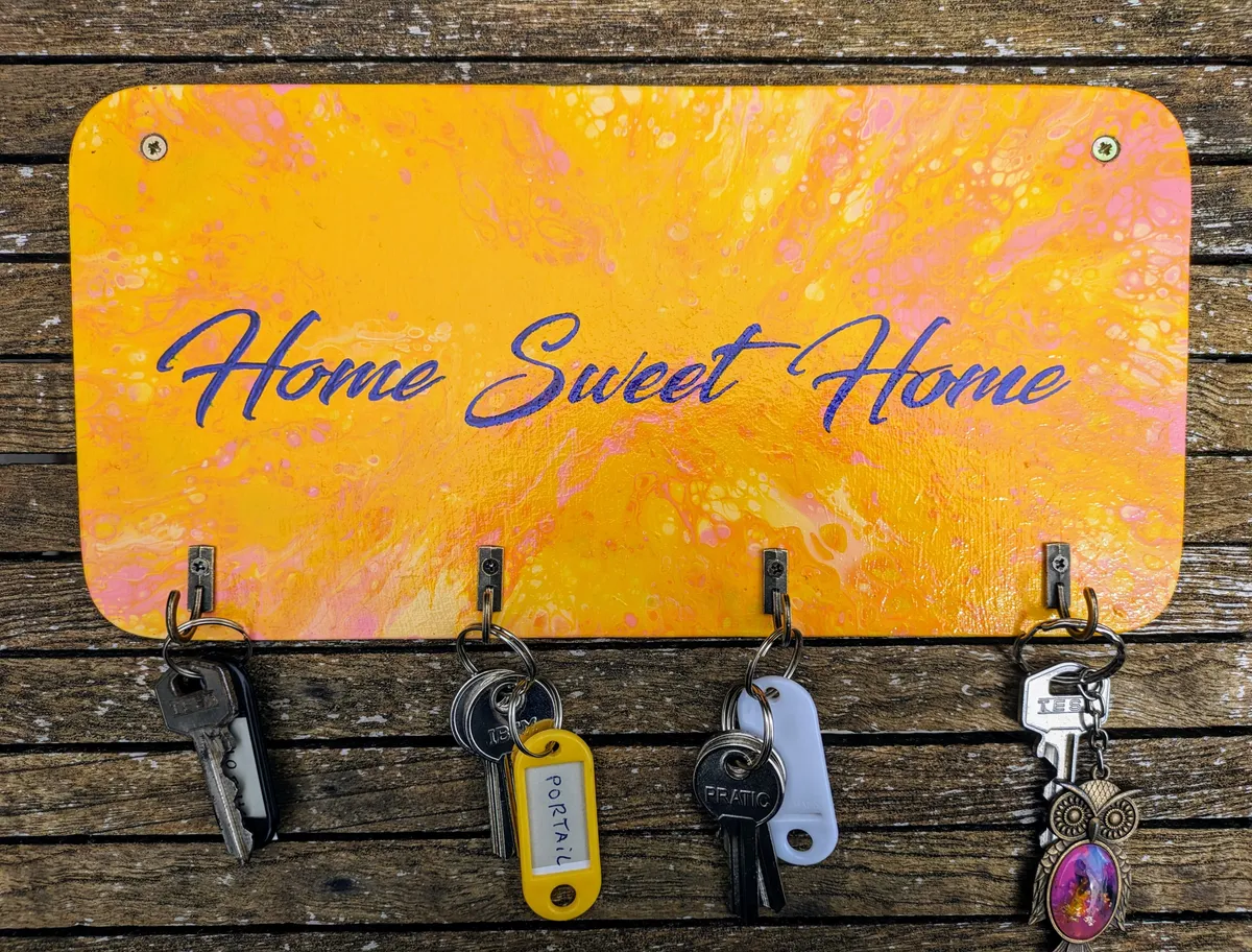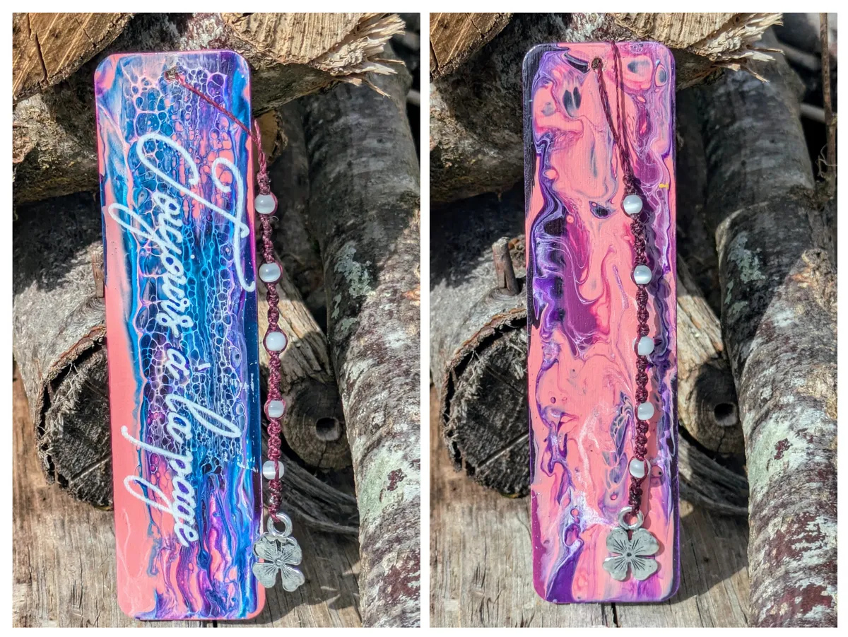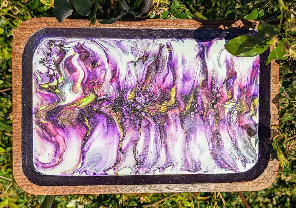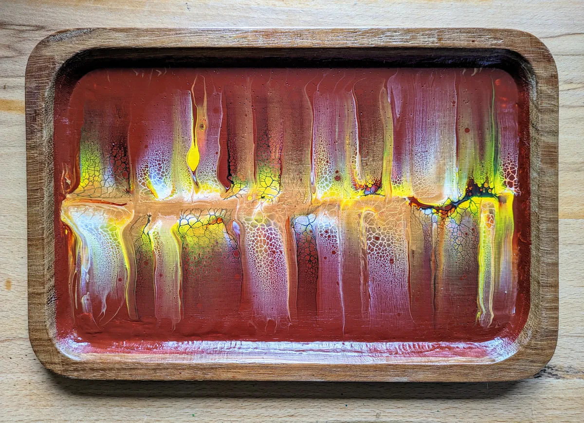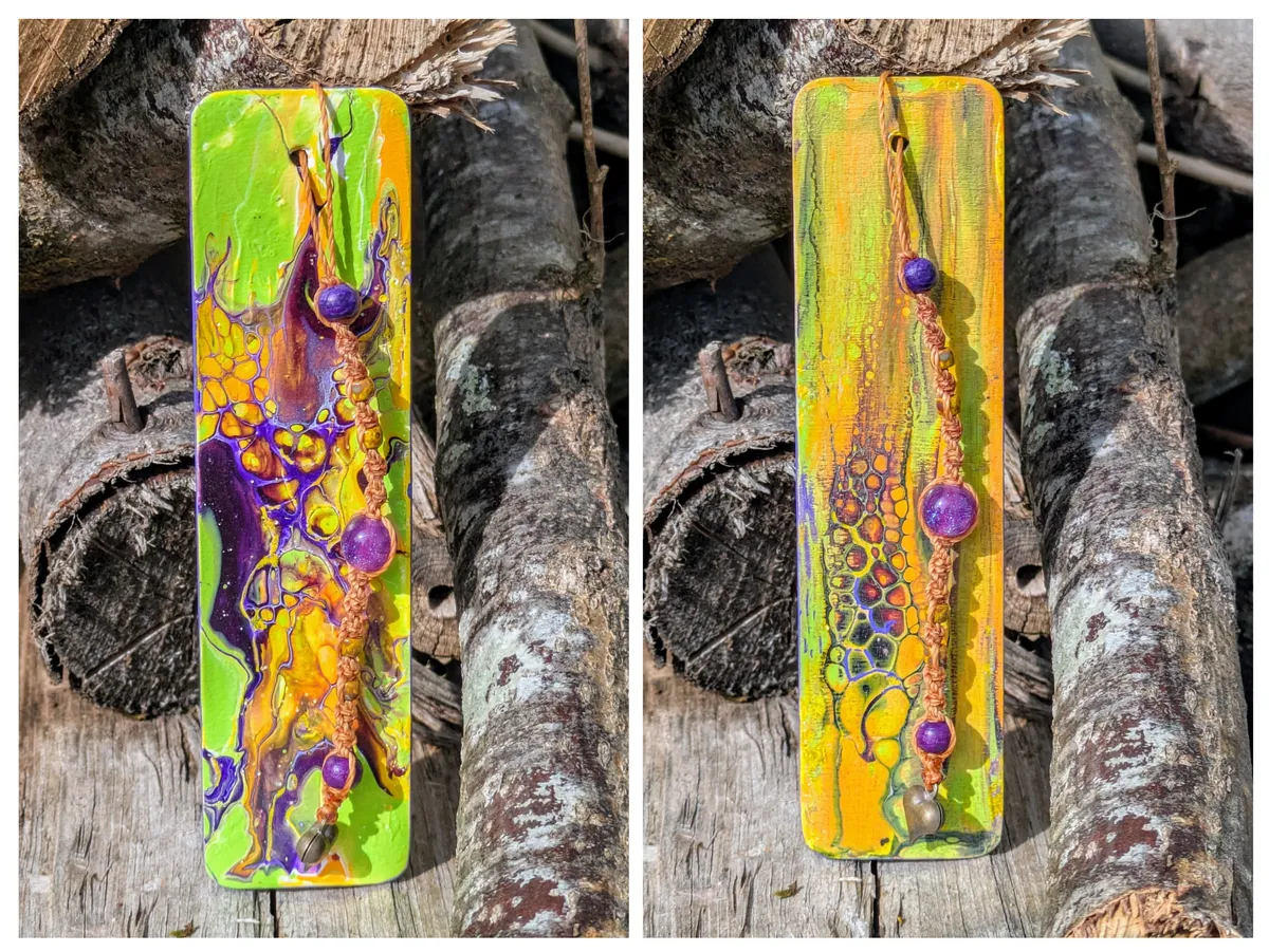 Découvrez les dessous de plat, dessous de verre, plaques de porte ou horloges qui apporteront une touche de couleur et d’originalité dans la maison. La peinture est coulée sur du bois ou de la faïence et recouverte d’une couche de résine qui la protège (poussière, UV, chaud, froid...) et lui donne un effet cristallin.