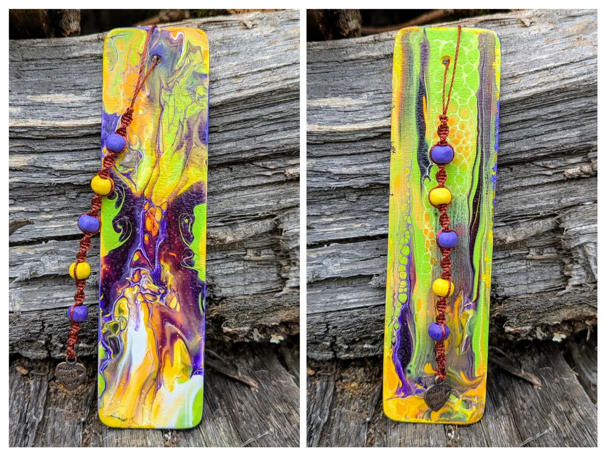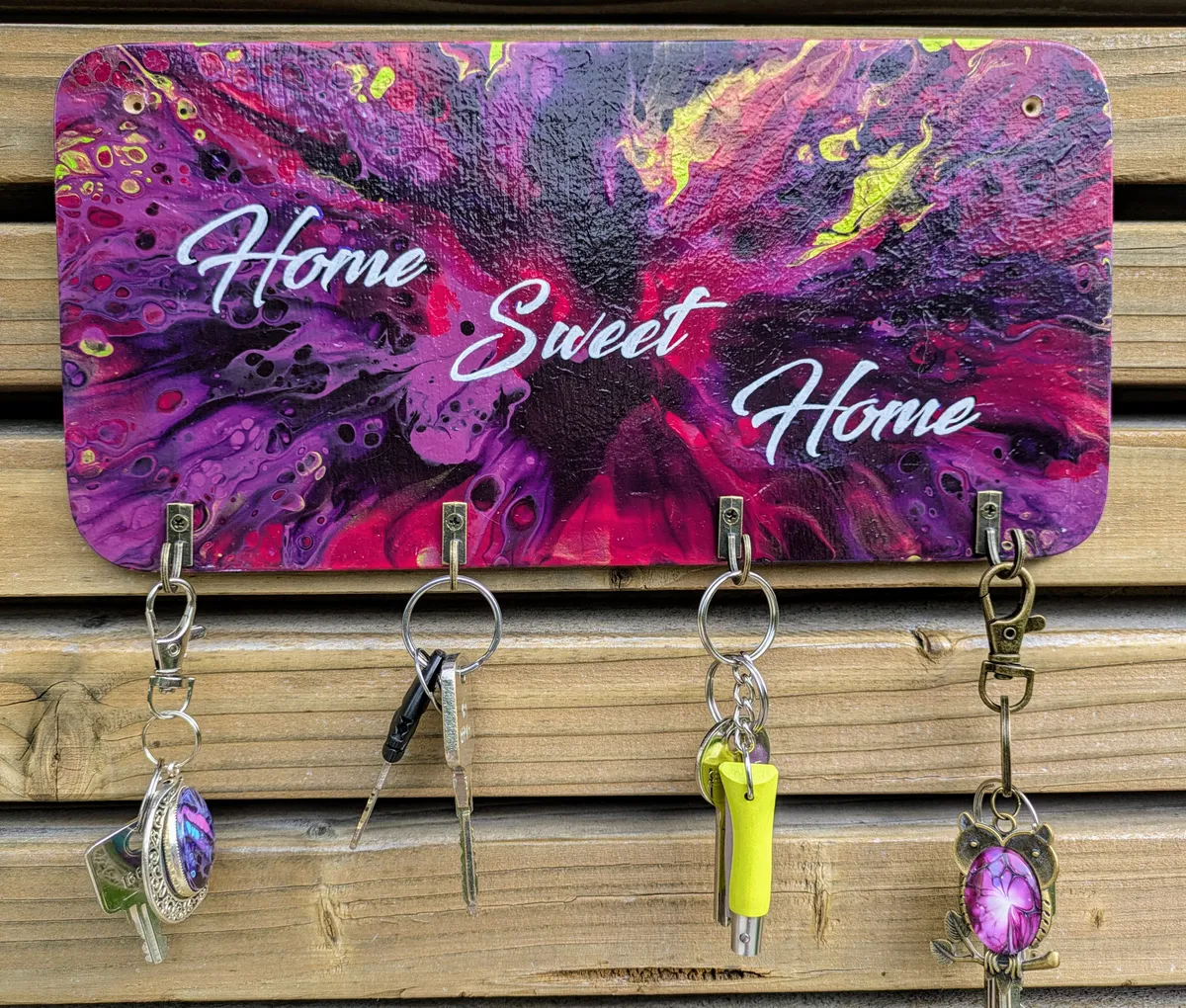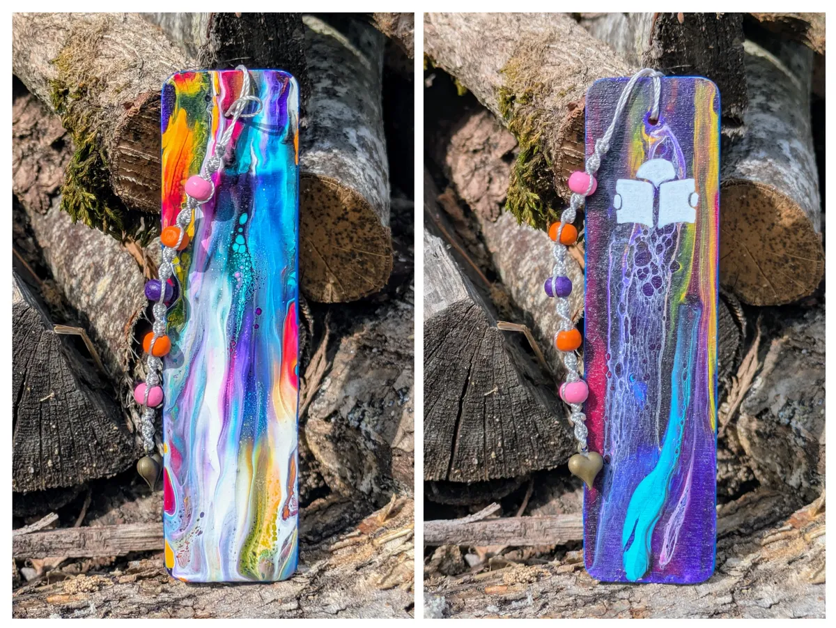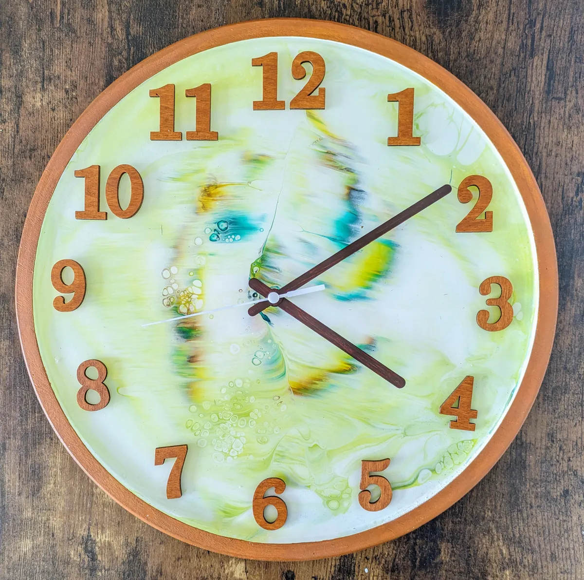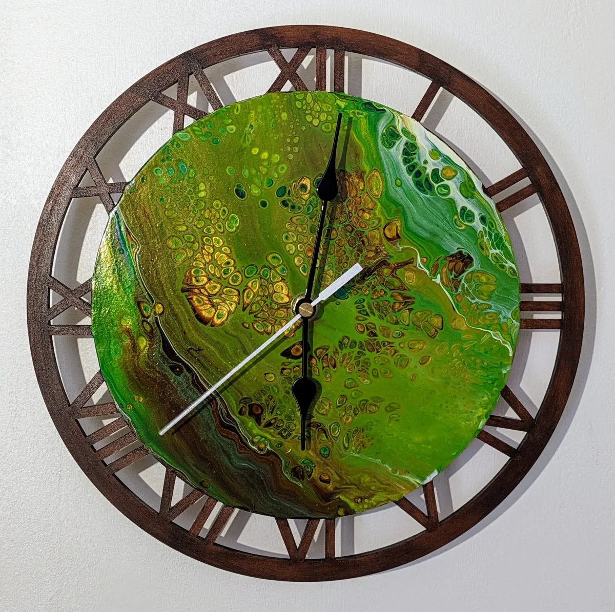 Découvrez les dessous de plat, dessous de verre, plaques de porte ou horloges qui apporteront une touche de couleur et d’originalité dans la maison. La peinture est coulée sur du bois ou de la faïence et recouverte d’une couche de résine qui la protège (poussière, UV, chaud, froid...) et lui donne un effet cristallin.